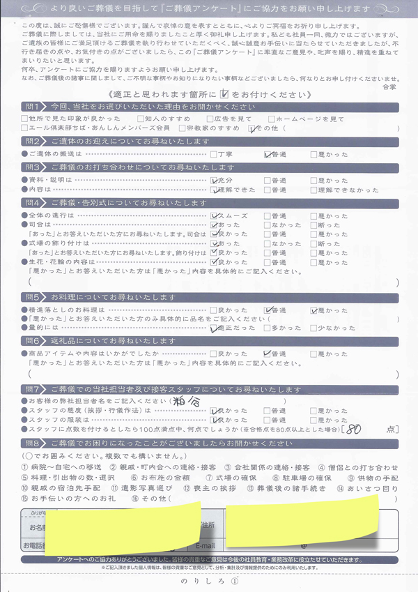 ・ご遺体の搬送は…○丁寧 ●普通 ○悪かった