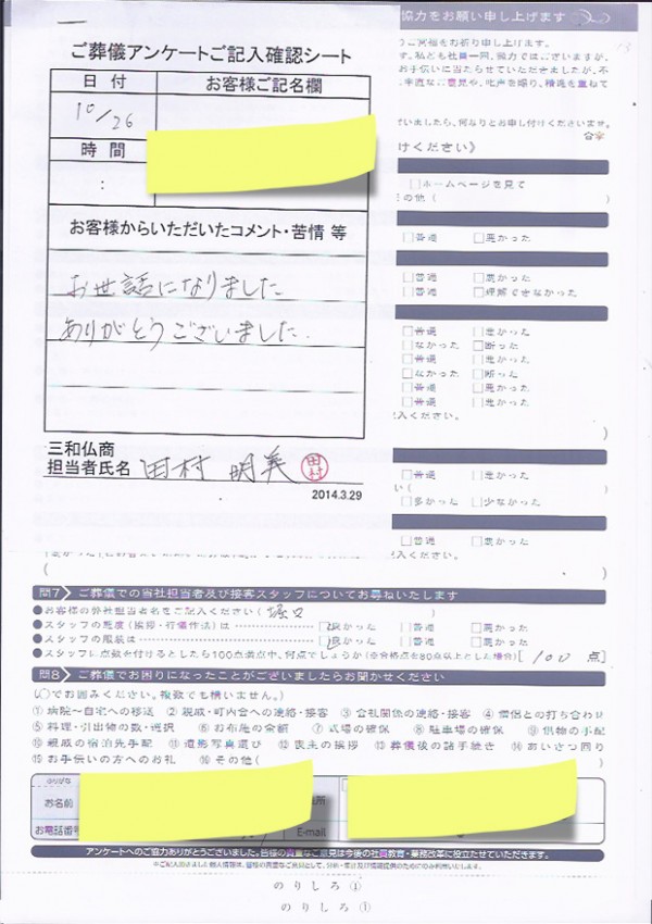 ・ご遺体の搬送は…○丁寧 ○普通 ○悪かった